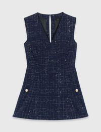 Playsuit dress The Maje woman makes a style statement by reinventing the tailored look with a bright, bold twist. This short cotton tweed playsuit has an alluring illusion effect, with a structured A-line cut, V-neckline and keyhole back. A scattering of silver-tone rhinestones and the gold-tone buttons on the pockets brighten up the garment for a festive, contemporary style. Pair it with silver slingback pumps, mid-length socks and a Miss M mini bag for a chic look with a preppy touch. - Layered-effect playsuit in cotton tweed - Inlaid silver-tone rhinestones - V-neckline - Keyhole back - Short, sleeveless A-line cut - Welt pockets with gold-tone buttons The model is 5' 10 and wears a size FR 36. Reference: MFPCO00363_0103 Composition & care Main material: 44% cotton, 25% polyester, 23% viscose, 7% polyamide, 1% other fibres Shorts lining: 100% viscose Inner fabric: 100% polyester Do not wash Do not bleach Do not tumble dry Do not iron F/ - Professional dry clean, with hydrocarbon solvent, gentle treatment