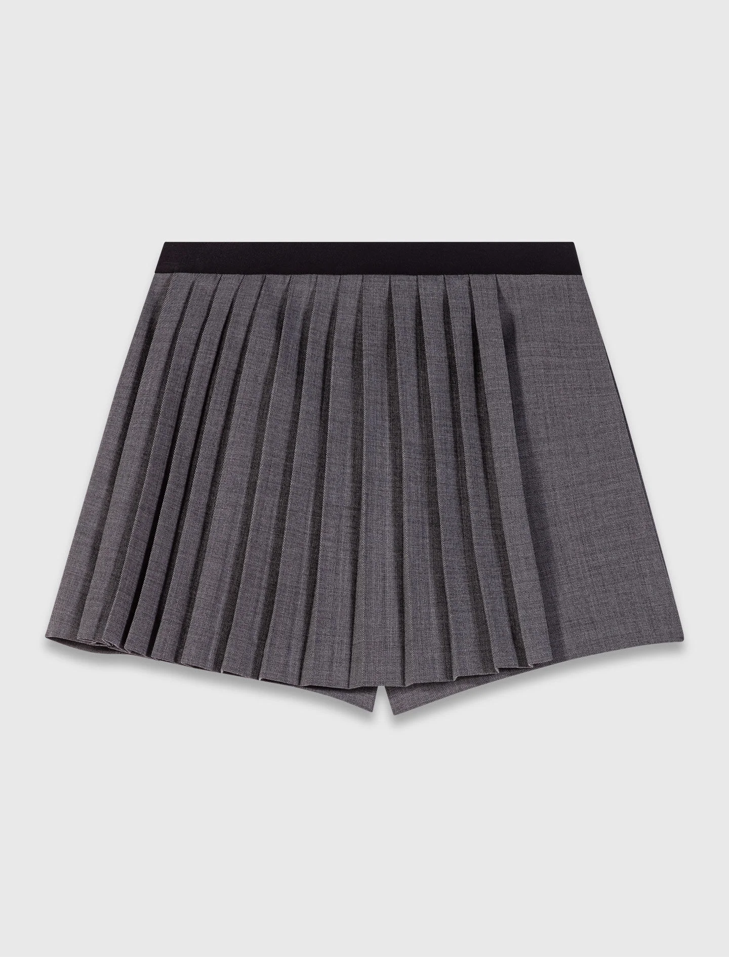 Pleated skort These pleated shorts give the preppy look a metropolitan twist. Their mini-skirt trompe-l'oeil effect creates movement, while the contrasting elasticated waist modernises the silhouette. Easy to style, wear them with a printed T-shirt and chunky boots to play on contrasts, or with a fitted jacket for a more graphic look. - Pleated skirt-effect shorts - Contrasting elasticated waist - Back zip fastening and 2 pockets - Designed for a standard fit The model is 5' 10 and wears a size 36. Reference: MFPSH00668_0505 Composition & care Main material: 53% polyester, 26% virgin wool, 17% viscose, 4% elastane Pocket lining: 100% viscose Inner fabric: 100% polyester Do not wash Do not bleach Do not tumble dry Iron at a maximum temperature of 110°C without steam F - Professional dry clean, with hydrocarbon solvent, normal treatment