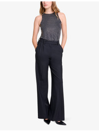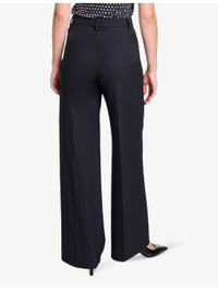 Pressed-creases pleated wide-leg mid-rise stretch-woven trousers