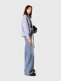Striped bow shirt Maje stylishly reinvents wardrobe essentials, playing with volumes and fabrics. Inspired by the preppy wardrobe, this shirt with a removable contrasting collar features a pussy-bow that can be tied or worn loose, and a fine stripe print. Perfect for layering and slipping under a knit, wear it with faded jeans and accessorise with a cargo bag and leather ankle boots. - Fine-striped poplin shirt - removable Pussy-bow collar with contrasting collar - Chest pocket and buttoned cuffs - Designed for a boxy fit - Maje stylishly reinvents wardrobe essentials, playing with volumes and fabrics. Inspired by the preppy wardrobe, this shirt with a removable contrasting collar features a pussy-bow that can be tied or worn loose, and a fine stripe print. Perfect for layering and slipping under a knit, wear it with faded jeans and accessorise with a cargo bag and leather ankle boots. The model is 5' 10 and wears a size 1. Reference: MFPCM00691_2507 Composition & care Main material: 86% cotton, 14% polyamide Buttons: 100% nacre Secondary material: 100% cotton Do not wash Do not bleach Do not tumble dry Iron at a maximum temperature of 110°C without steam F/ - Professional dry clean, with hydrocarbon solvent, gentle treatment