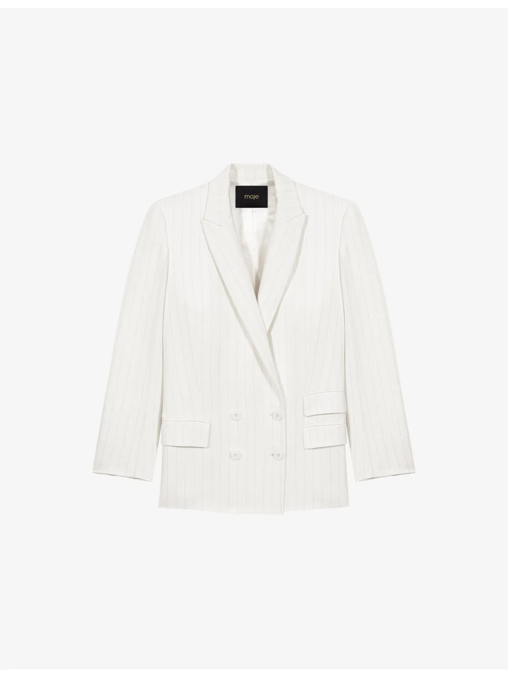 PRODUCT DETAILS - Maje lyocell-blend blazer - 53% lyocell, 31% linen, 16% cotton - Button fastening - Relaxed fit, peak lapels, double-breasted, long sleeves, buttoned cuffs, side pockets - Dry clean - True to size - Model is 5ft 9in/1.75m and wears a size UK 8 - Midweight, non-stretch Ref: R04598260
