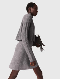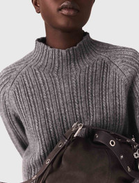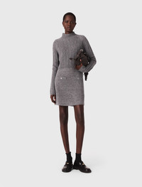 2-in-1 knit mini dress A silhouette in motion, designed as a play of contrasts for the new season. Maje introduces hybrid pieces, offering a multitude of ways to wear and styles. Crafted in a knit style, this 2-in-1 dress with sleeves reveals a sleeveless cut and a removable cable knit jumper, as well as two buttoned pockets. A structured look, adaptable to your desires, to be accessorised with a silk scarf and leather pieces like boots and an M bag. - 2-in-1 cable knit dress - Sleeveless dress with round neck and flared skirt - Removable cropped jumper with high neck and long sleeves - Runs large, size down The model is 5' 10 and wears a size 36. Reference: MFPRO04360_0505 Composition & care Main material: 45% acrylic, 30% polyamide, 25% wool Top: 44% acrylic, 30% polyamide, 25% wool, 1% elastane Hand wash Do not bleach Do not tumble dry Iron at a maximum temperature of 110°C without steam F - Professional dry clean, with hydrocarbon solvent, normal treatment