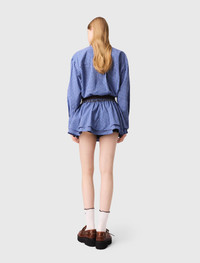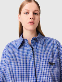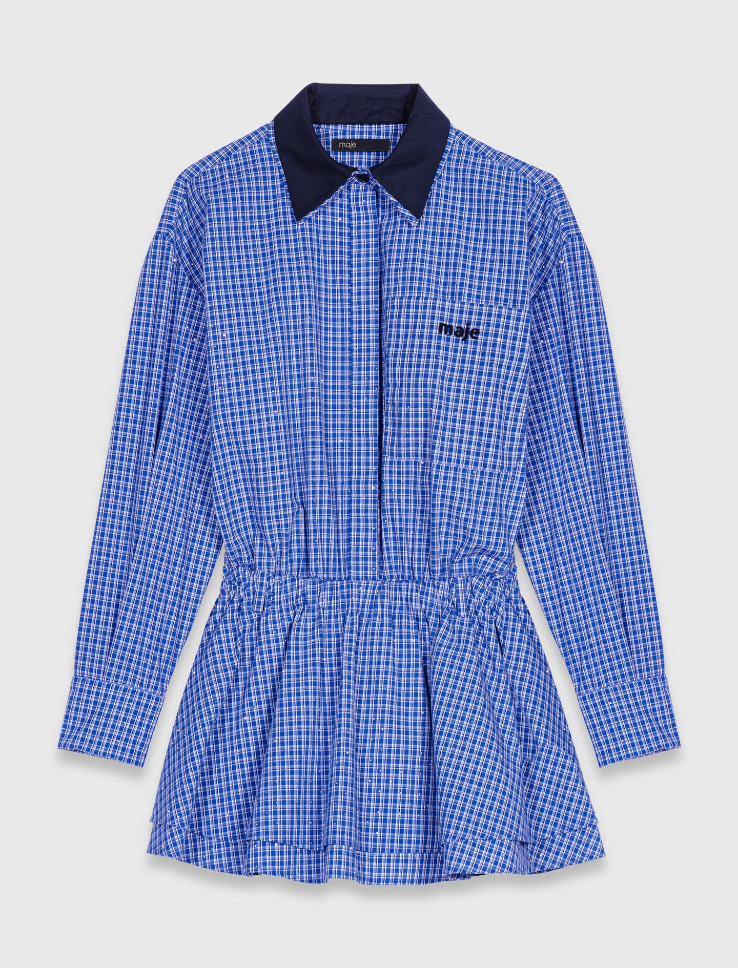 Jumpsuit with removable collar Maje offers a collection where the new energy of the season blends with timeless elegance. Each piece, designed to accompany the transition from summer to autumn, combines comfort with a bold style. This dress-style playsuit in stretch cotton features a check print with sparkling rhinestones and a patch pocket on the chest with raised Maje embroidery. It has a removable contrast double collar and long sleeves with buttoned cuffs. Wear it with leather belts, refined jewellery, a signature bag and leather loafers for a look that's both relaxed and sophisticated. - Dress-style playsuit - Check patterns with rhinestones - Double collar with one removable contrast - Button fastening with covered placket - Elasticated waist - Patch pocket with Maje embroidery on the chest - Designed for a standard fit The model is 5' 10 and wears a size 36. Reference: MFPCO00353_D052 Composition & care Main material: 100% cotton Secondary material: 100% cotton Hand wash Do not bleach Do not tumble dry Iron at a maximum temperature of 110°C without steam F - Professional dry clean, with hydrocarbon solvent, normal treatment