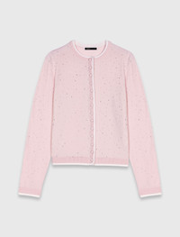 Knit embellished cardigan Maje draws inspiration from a new energy by combining modernity and elegance, with pieces that play with metropolitan codes while remaining timeless. This 100% wool knit cardigan embellished with rhinestones stands out as a key piece of the collection. Its round neck and long sleeves offer comfort and softness, while the contrasting 2-in-1 effect hem adds a sophisticated touch. This piece, both chic and casual, ideal for everyday wear, features a covered button fastening and can be worn as a complete look with the matching jumper to create a twin-set. Add a flared skirt and signature accessories like a suede bag and leather boots to complete the look. - Knit cardigan embellished with rhinestones - Round neck and long sleeves - Contrasting 2-in-1 effect hem - Covered button fastening - Designed for a standard fit - Maje draws inspiration from a new energy by combining modernity and elegance, with pieces that play with metropolitan codes while remaining timeless. - This 100% wool knit cardigan embellished with rhinestones stands out as a key piece of the collection. Its round neck and long sleeves offer comfort and softness, while the contrasting 2-in-1 effect hem adds a sophisticated touch. This piece, both chic and casual, ideal for everyday wear, features a covered button fastening and can be worn as a complete look with the matching jumper to create a twin-set. Add a flared skirt and signature accessories like a suede bag and leather boots to complete the look. The model is 5' 10 and wears a size 1. Reference: MFPCA00620_0183 Composition & care Main material: 84% wool, 14% polyamide, 2% elastane Rib: 91% wool, 7% polyamide, 2% elastane Hand wash Do not bleach Do not tumble dry Iron at a maximum temperature of 110°C without steam Do not dry clean