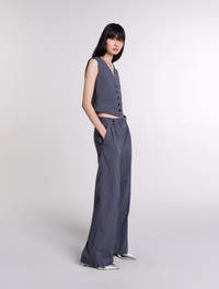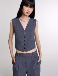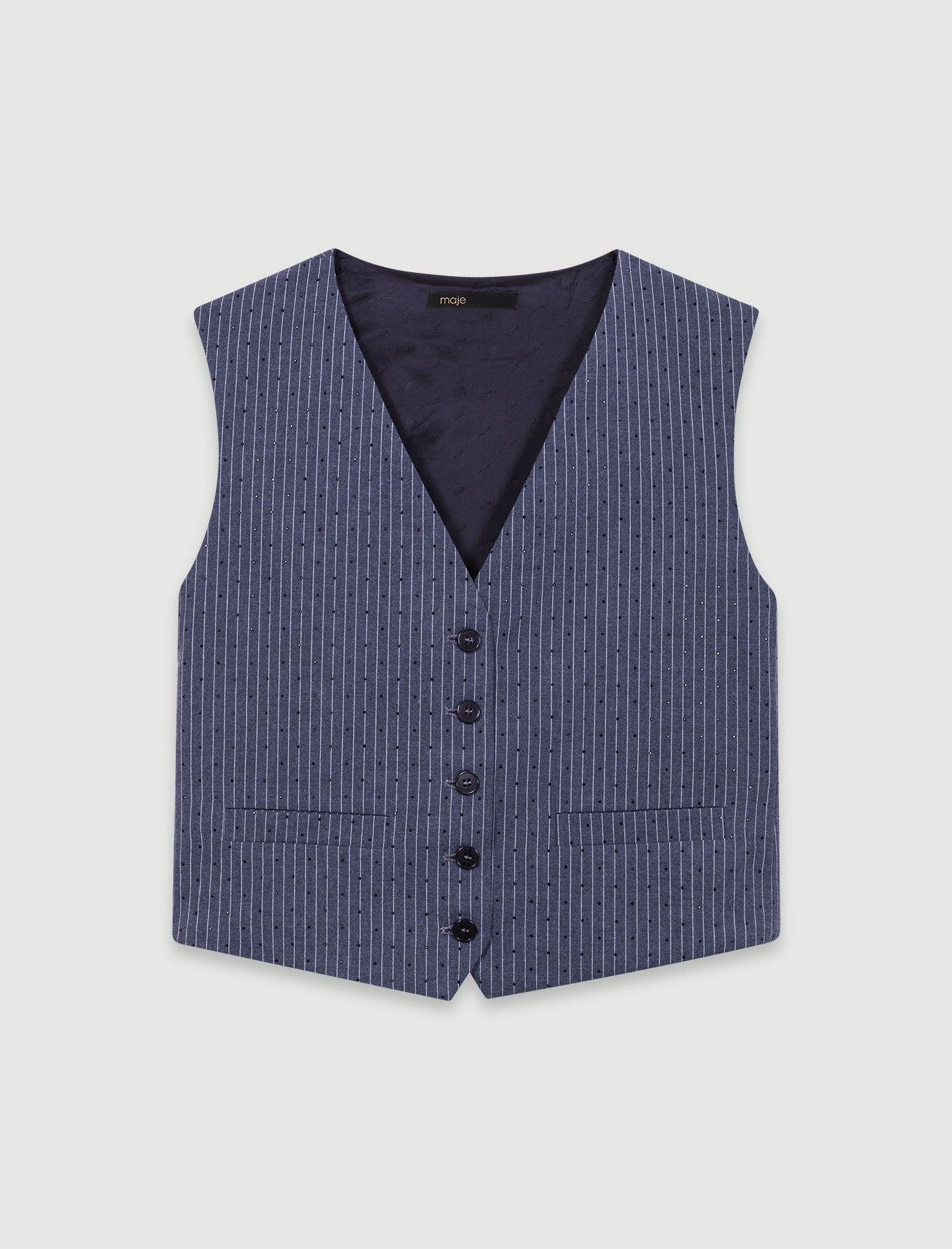 Rhinestone jacket An ode to versatility, the new Maje collection uses comforting fabrics and timeless colours to make your daywear and evening wear look simply sublime. For wearing on its own or layered, this jacket is embellished with narrow stripes and all-over rhinestones for a chic, sassy look. Alongside a V-neckline and button fastening, it has two welt pockets and an adjustable martingale at the back. Go for a head-to-toe outfit with matching trousers, pumps and jewellery. - Tennis striped jacket - All-over rhinestones - V-neck - Button fastening - 2 welt pockets - Adjustable martingale at the back The model is 5' 10 and wears a size 36. Reference: MFPVE00579_B050 Composition & care Main fabric: 79% polyester, 19% viscose, 2% elastane Lining: 100% viscose Do not wash Do not bleach Do not tumble dry Iron at a maximum temperature of 110°C without steam F - Professional dry clean, with hydrocarbon solvent, normal treatment