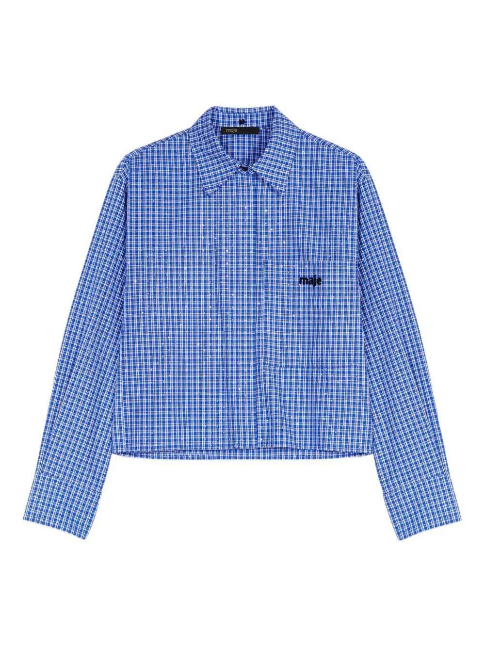 rhinestone-embellished shirt Highlights - Blue - Plaid pattern - Rhinestone embellishment - Detachable contrasting collar - Long sleeves - Chest patch pocket - Logo detail Imported Composition Cotton 100% Washing instructions Read Manufacturer Guidelines