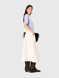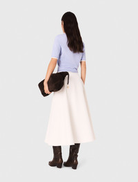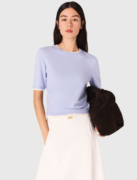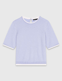 Rhinestone short-sleeve sweater The collection adds a touch of sparkle to the wardrobe, combining absolute comfort with signature details. This wool jumper brightens the silhouette with its delicate rhinestones and 2-in-1 effect contrasting finishes. Featuring a round neck and short sleeves, it can be worn under the matching cardigan for a twin set look. Add a gently flared skirt and a signature bag to complete the look. - Wool sweater embellished with rhinestones - Round neck and short sleeves - 2-in-1 effect contrasting trims at neck, sleeves and waist - Designed for a standard fit The model is 5' 10 and wears a size 1. Reference: MFPPU00916_0201 Composition & care Main material: 84% wool, 14% polyamide, 2% elastane Rib: 91% wool, 7% polyamide, 2% elastane Hand wash Do not bleach Do not tumble dry Iron at a maximum temperature of 110°C without steam Do not dry clean