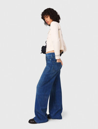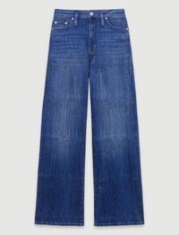 Rhinestone jeans An ode to versatility, the new Maje collection uses comforting fabrics and timeless colours to make your daywear and evening wear look simply sublime. Classic denim jeans have been given a bold new twist this season. With their wide, flattering fit, they’re embellished with rhinestones in all-over stripes for a distinctly chic look. They’re easy to mix and match with a casual jumper and pumps. - Wide-leg jeans - Rhinestones in stripes - Belt loops - Zip and button fastening - 5 pockets - Jacron - Contrast topstitching The model is 5' 10 and wears a size 36. Reference: MFPJE00636_0201 Composition & care Main fabric: 81% cotton, 16% polyester, 2% lyocell, 1% elastane Pocket lining: 67% polyester, 33% cotton Jacron: calfskin Gentle cycle 30° Do not bleach Do not tumble dry Iron at a maximum temperature of 110°C without steam Do not dry clean