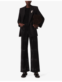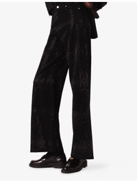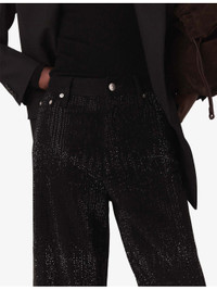PRODUCT DETAILS - Maje stetch-denim jeans - 99% cotton, 1% elastane - Exposed button fastening at front - Regular fit, mid-rise, belt loops, pockets at the side, wide leg, all-over rhinestone embellishment - Machine wash at 30°C - True to size - Model is 5ft 10in/1.78m and wears a size UK 8 - Midweight, slight stretch Ref: R04532837