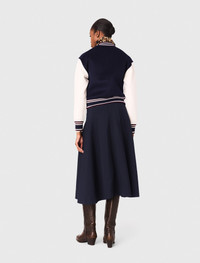 Mixed fabric bomber Between Paris and New York, Maje imagines a wardrobe that combines the boldness of American campuses with the free and confident elegance of the Left Bank. With its contrasting bands, interplay of textures and university teddy-inspired cut, this bomber asserts a strong, contemporary silhouette. Between sportswear and fashion details, it stands out as a key piece to layer over a dress for a spontaneous and characterful look. - Two-tone bomber in a mix of materials - Contrasting band on the collar, cuffs and waist - Button fastening and side pockets - Designed for a boxy fit The model is 5' 10 and wears a size 36. Reference: MFPCA00652_0103 Composition & care Main material: 100% wool Sleeves: 60% viscose, 30% polyester, 9% polyamide, 1% elastane Pocket: 61% viscose, 30% polyester, 8% polyamide, 1% elastane Rib: 64% viscose, 31% polyester, 4% polyamide, 1% elastane Do not wash Do not bleach Do not tumble dry Iron at a maximum temperature of 110°C without steam F - Professional dry clean, with hydrocarbon solvent, normal treatment