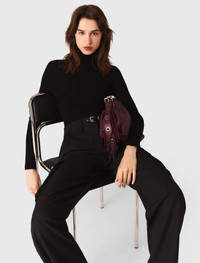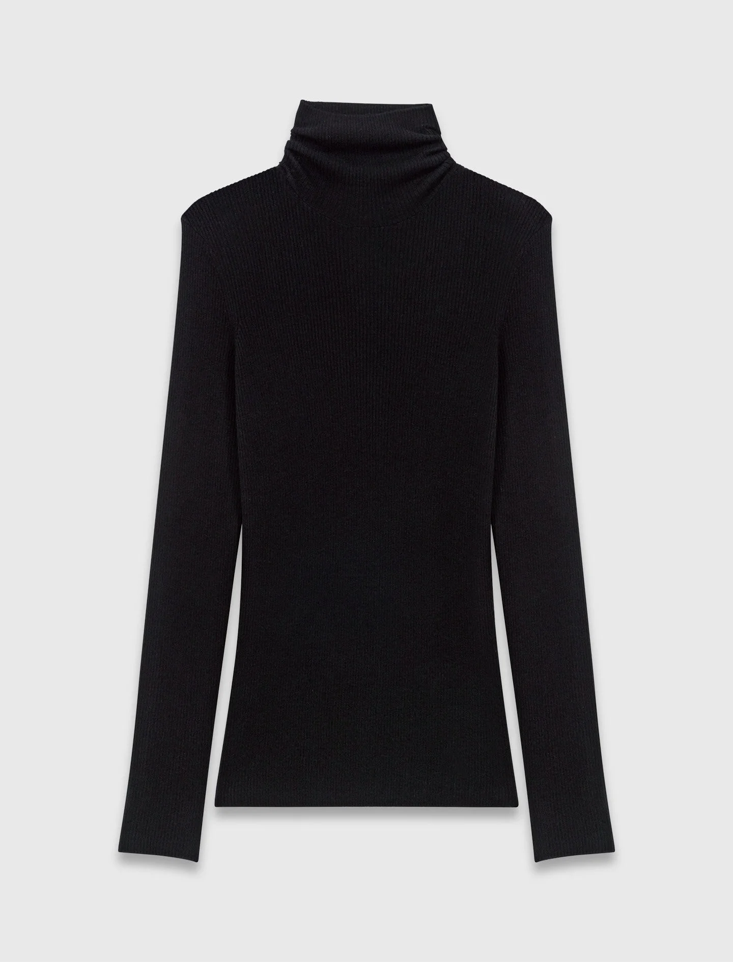 Second-skin sweater with a high neck Essential pieces are adorned with signature details in this new collection, imagined as an ode to preppy style. This high-neck jumper creates a close-fitting silhouette, enhanced by refined ribbed knit and a discreet Clover tag on the back. An ideal base for creating a metropolitan and elegant look, to be paired with tailored trousers or a preppy mini skirt. On the accessories side, add a pair of leather ankle boots to complete the look. - Fine rib-knit sweater with long sleeves - Structured high neck - Clover tag on back - Designed for a slim fit The model is 5' 11 and wears a size 1. Reference: MFPPU00920_2517 Composition & care Main material: 88% wool, 12% silk Hand wash Do not bleach Do not tumble dry Iron at a maximum temperature of 110°C without steam F - Professional dry clean, with hydrocarbon solvent, normal treatment