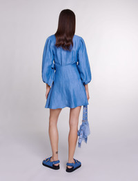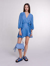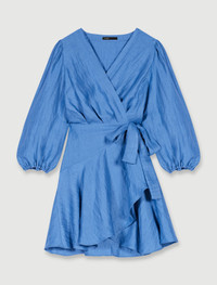 Linen wrap dress For this new collection, the Maje studio has taken timeless pieces and reinterpreted them with a bold new twist and feminine tailoring. This short linen dress is both chic and casual, with a wrap neck. Alongside full 3/4-length sleeves and elasticated cuffs, it has a fitted waistband with side ties and a slightly asymmetrical ruffled skirt. For an elegant, dainty look, go for a monochrome outfit with a bag and platform sandals, and accentuate your look with gold jewellery. - Short wrap dress - Ties - Ruffled skirt The model is 5' 9 and wears a size 36. Reference: MFPRO03617_0201 Composition & care Main fabric: 88% linen, 12% polyamide Gentle cycle 30° Do not bleach Do not tumble dry Iron at a maximum temperature of 110°C without steam F - Professional dry clean, with hydrocarbon solvent, normal treatment
