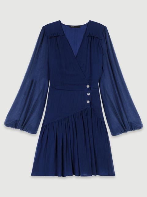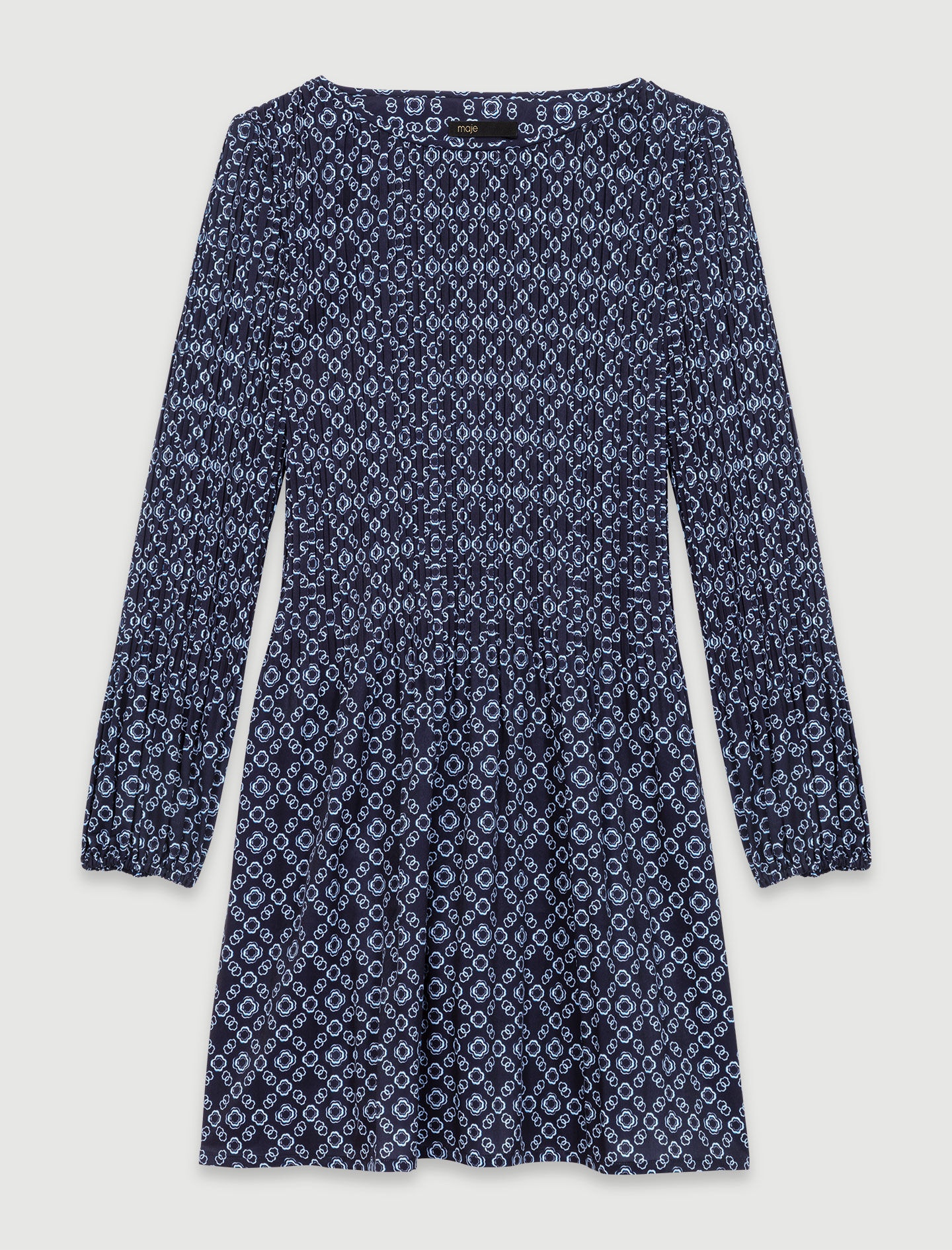 Short Clover motif dress This winter, the studio has created an ode to timeless Parisian elegance. From preppy everyday wear to glittering evening events, the new collection is all about sophistication and boldness, in a subtle interplay of colours and cuts. Give your seasonal outfit a new twist with this short dress embellished with our signature Clover motif. Alongside a round neck, long sleeves and elasticated cuffs, it has a flared skirt for an elegant, airy look. Accessorise your outfit with statement accessories like jewellery and ankle boots. - Short dress - Clover motif - Round neck - Elasticated cuffs - Flared skirt Reference: MFPRO03880_B053 Composition & care Main fabric: 100% polyester Hand wash Do not bleach Do not tumble dry Do not iron F - Professional dry clean, with hydrocarbon solvent, normal treatment