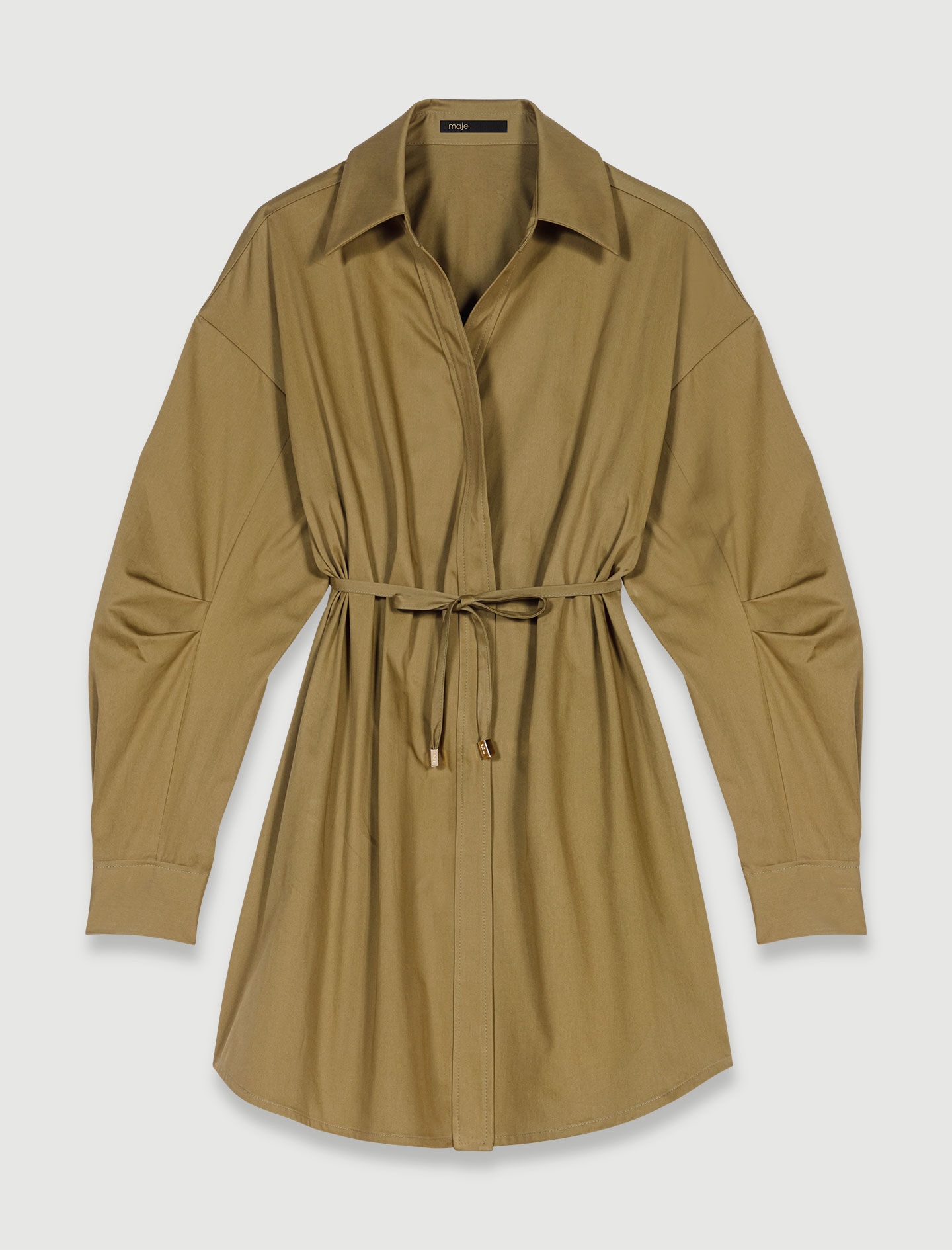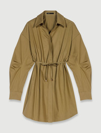 Cutaway wrap dress Summer is just around the corner, and with it comes an irresistible urge to travel! From days on the beach to special occasions and chic evenings, the studio has created the perfect suitcase, so you can celebrate your summer in style. Made from cotton, this shirt dress is full of chic details. Alongside a shirt collar and long sleeves with buttoned cuffs, it has a wrap fastening, accentuated by a tie at the waist which you can use to create a plunging or more modest neckline. A subtly smocked cutaway design at the back adds a daring touch to your summer silhouette. Go for an elegant yet casual look by choosing statement accessories like a bag and string sandals. - Belted shirt dress - Wrap fastening - Smocked cutaway back Reference: MFPRO03637_0020 Composition & care Main fabric: 95% cotton, 5% elastane Tab: 100% polyamide Regular cycle 30° Do not bleach Tumble drying possible, moderate temperature (60°) Iron at a maximum temperature of 110°C without steam F - Professional dry clean, with hydrocarbon solvent, normal treatment