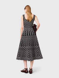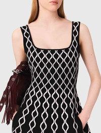 Jacquard knit midi dress This jacquard-knit dress has a body con design. The square neckline and wide straps structure the top, while the flared petal skirt adds a touch of lightness. Two discreet pockets complete the look. Ideal for day or night, pair with studded ballet flats for a bold look. - Jacquard knit mini dress - Contrasting motifs - Wide shoulder straps - Square neck - Flared petal skirt - 2 pockets - Designed for a standard fit The model is 5' 10 and wears a size FR 36. Reference: MFPRO04306_O001 Composition & care Main material: 84% polyester, 15% polyamide, 1% elastane Neckline: 84% polyester, 15% polyamide, 1% elastane Hand wash Do not bleach Do not tumble dry Iron at a maximum temperature of 110°C without steam F/ - Professional dry clean, with hydrocarbon solvent, gentle treatment