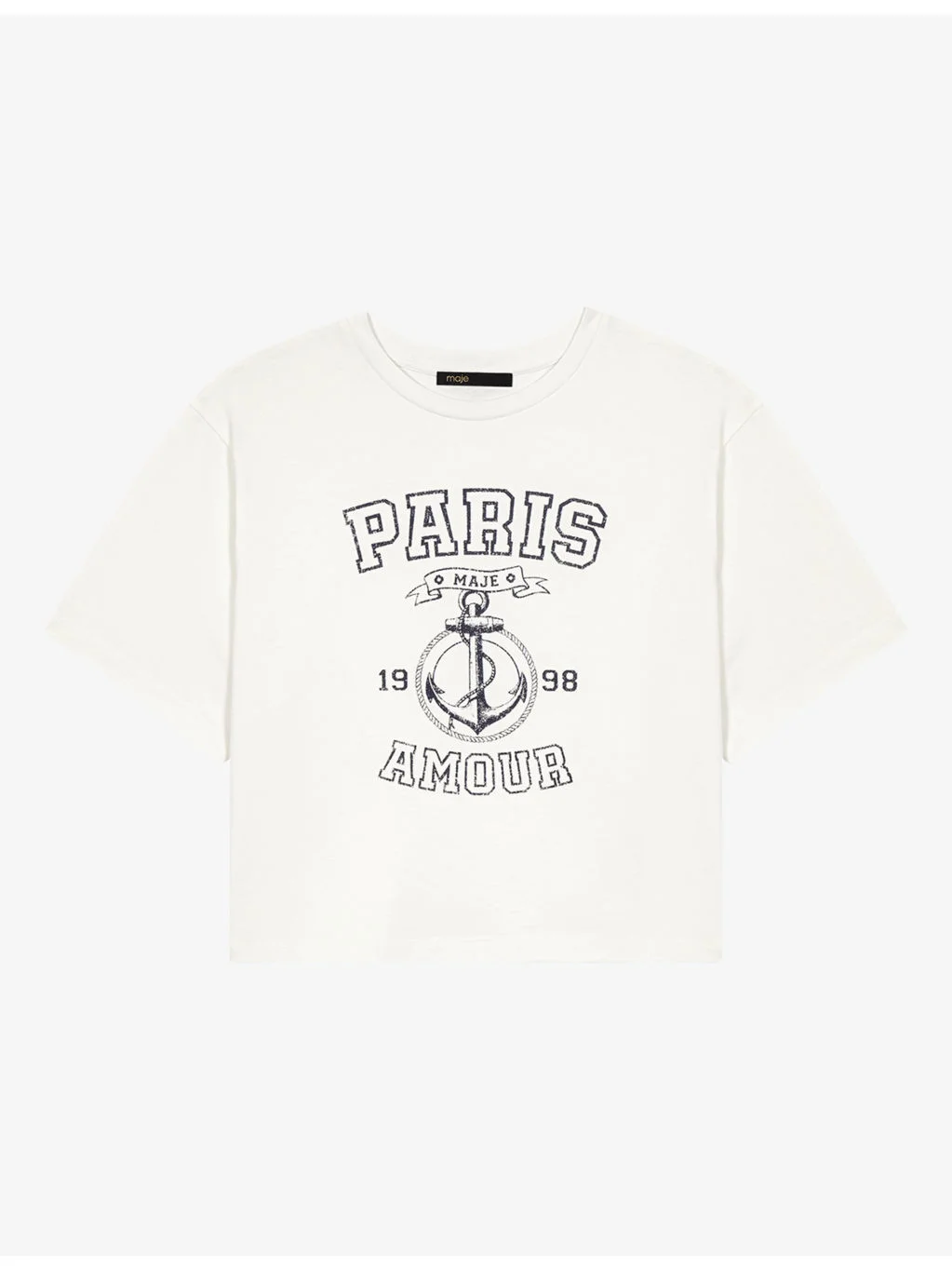 PRODUCT DETAILS - Maje cotton-jersey T-shirt - 100% cotton - Regular fit, round-neck, short sleeves, sailor-inspired print to chest - Machine wash mild - True to size - Lightweight, slight stretch Ref: R04598335