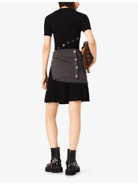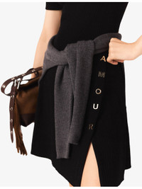 PRODUCT DETAILS - Maje stretch-knit dress - 57% viscose, 42% polyamide, 1% elastane - Slim fit, high neck, short sleeves, 'amour' button detail at the side - Hand wash - True to size - Midweight, slight stretch Ref: R04578851