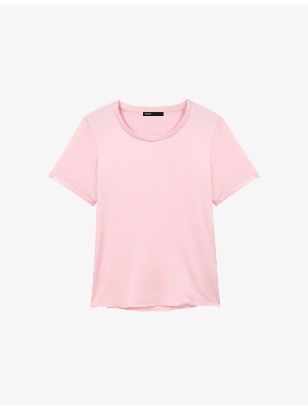 PRODUCT DETAILS - Maje stretch-silk top - 94% silk, 6% elastane - Relaxed fit, round-neck, short sleeves - Hand wash - True to size - Model is 5ft 10in/1.78m and wears a size UK 8 - Lightweight, slight stretch Ref: R04612435
