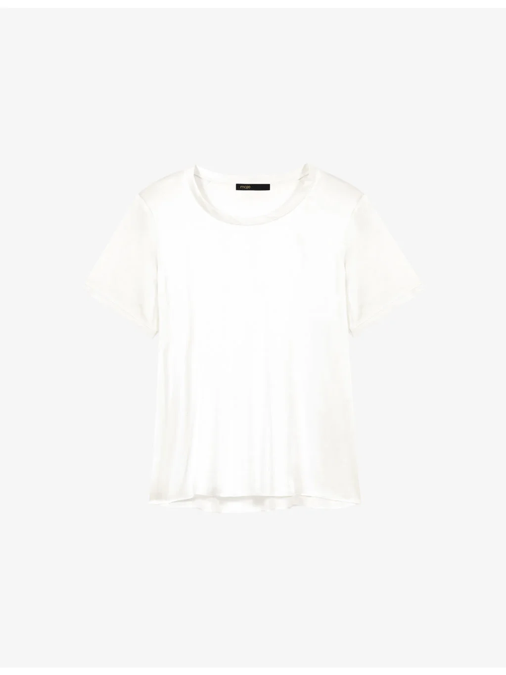 PRODUCT DETAILS - Maje stretch-silk top - 94% silk, 6% elastane - Relaxed fit, round-neck, short sleeves - Hand wash - True to size - Model is 5ft 10in/1.78m and wears a size UK 8 - Lightweight, slight stretch Ref: R04612435