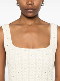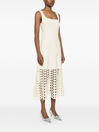 open-knit midi dress Highlights - Light yellow - Concealed side zip fastening - Partial lining - Square neck - Sleeveless Imported Composition Recycled Polyester 100% SIZE & FIT Model measurements Height 5 ft 11 in(1.8 m) Bust/Chest 32.28 in(82 cm) Hips 36.61 in(93 cm) Waist 24.01 in(61 cm) FittingInformation Designed for a close fit at the chest and waist with a loose fit at the hip Made from a midweight non-stretch fabric, this piece offers minimal elasticity when worn