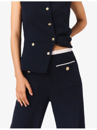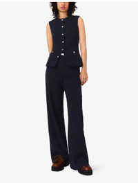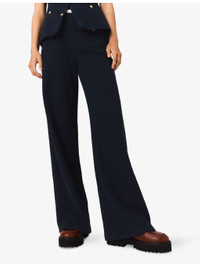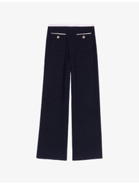 PRODUCT DETAILS - Maje cotton-blend trousers - 63% cotton, 24% polyester, 12% acrylic, 1% elastane - Button and zip-fly fastening - Regular fit, mid-rise, straight leg, patch side pockets, contrast trim, tweed texture - Dry clean - True to size - Model is 5ft 10in/1.78m and wears a size UK 8 - Midweight, non-stretch Ref: R04509776