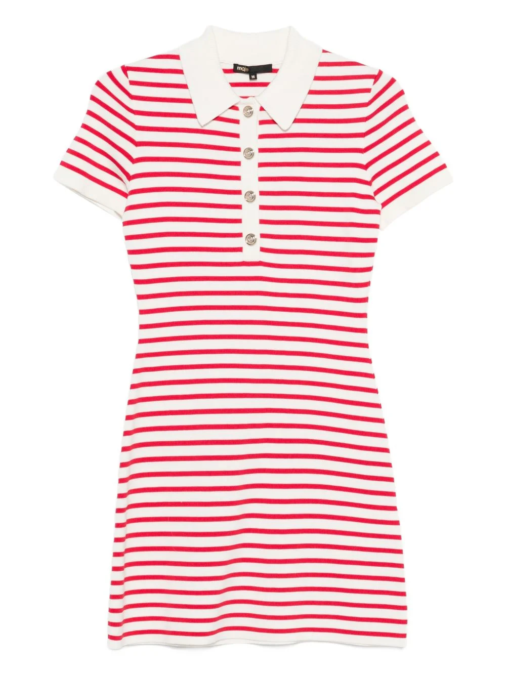 striped button knit dress Highlights - Red and white - Striped design - Polo collar - Button fastening - Ribbed detail Imported Composition Cotton 81%, Polyamide 19% Washing instructions Machine Wash