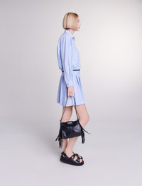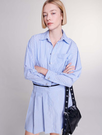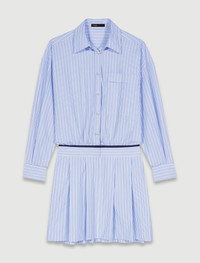 Short shirt dress With pastel tones, an interplay of contrasts and lightweight fabrics, this season, the studio appropriates the quintessence of tailoring to boldly reinvent timeless pieces. Embellished with stripes, this short shirt dress plays on lines to create a 2-in-1 illusion effect. The top is a long-sleeved shirt with a chest pocket and a collar embellished with jewellery buttons. Adjust the neckline to suit your mood with the press stud fastening. Emphasized by a contrasting elasticated waistband, its pleated crochet skirt is designed for a fitted, relaxed look. - Cotton illusion effect dress - Stripes - Shirt top - Pleated skirt The model is 5' 11 and wears a size 36. Reference: MFPRO03336_0201 Composition & care Main fabric: 100% cotton Piping: 100% cotton Gentle cycle 30° Do not bleach Do not tumble dry Iron at a maximum temperature of 110°C without steam F - Professional dry clean, with hydrocarbon solvent, normal treatment