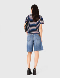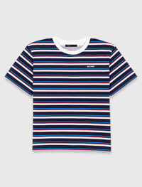 Striped T-shirt Between a nautical spirit and metropolitan style, the collection reinterprets wardrobe essentials with a graphic touch. This cropped T-shirt, a key piece of the collection, features contrasting stripes and Maje Paris embroidery on the chest. With a round neck and short sleeves, it complements all your outfits. Add denim shorts and signature accessories like a fringed bag and heeled shoes. - Cropped T-shirt with contrasting stripes - Round neck and short sleeves - Maje Paris embroidery on the chest - Designed for a standard fit The model is 5' 10 and wears a size 1. Reference: MFPTS00969_O025 Composition & care Main material: 100% cotton Embroidery: 100% polyester Regular cycle 30° Do not bleach Do not tumble dry Iron at a maximum temperature of 110°C without steam F - Professional dry clean, with hydrocarbon solvent, normal treatment