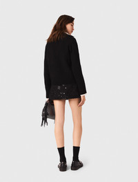 Wool-blend sweater Wardrobe classics get a fresh new look. With its sailor-style collar, slightly shorter front cut, and soft cashmere and wool fabric, this sweater brings a stylish twist to maritime inspiration. Perfect for warming up high-waisted jeans and the season’s must-have loafers. - Cashmere and wool long-sleeved sweater - Open V sailor-style collar - Ribbed finishes at the waist and cuffs The model is 5' 10 and wears a size 1. Reference: MFPPU00919_2517 Composition & care Main material: 69% wool, 25% cashmere, 5% polyamide, 1% elastane Tab: 70% wool, 30% cashmere Collar: 66% wool, 26% cashmere, 7% polyamide, 1% elastane Hand wash Do not bleach Do not tumble dry Iron at a maximum temperature of 110°C without steam F - Professional dry clean, with hydrocarbon solvent, normal treatment