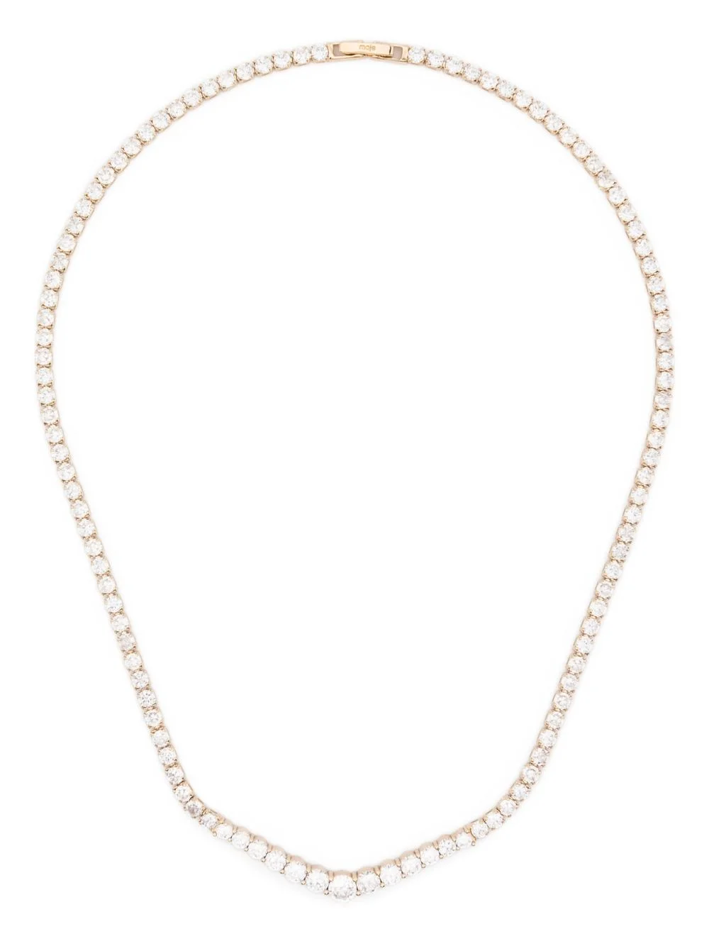 zirconia stones clasp fastening Necklace Highlights - Gold - Zirconia stones - Chain - Brass hardware - Clasp fastening Imported SIZE & FIT Model measurements Height 5 ft 11 in(1.8 m) Bust/Chest 32.28 in(82 cm) Hips 35.82 in(91 cm) Waist 25.19 in(64 cm) Measurement Length when open 16.92 in(43 cm) TOTAL LENGTH 11.41 in(29 cm)