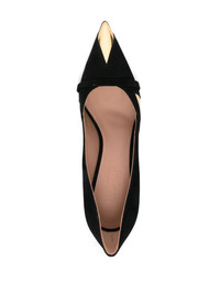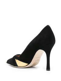 100mm contrasting-panel pumps Highlights - Black/gold-tone - Calf leather - Suede - Contrasting panel detail - 100mm high stiletto heel - Strap detailing - Pointed toe - Branded leather insole - Leather outsole Made in Italy Composition Suede 100% SIZE & FIT Measurement HEEL 3.93 in(10 cm)