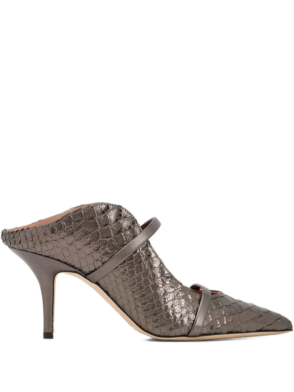 70mm Maureen mules Highlights - Taupe - Snakeskin effect - Pointed toe - Stiletto heel - Double strap Made in Italy Composition Outer: Leather 100% Lining: Leather 100% Sole: Leather 100%