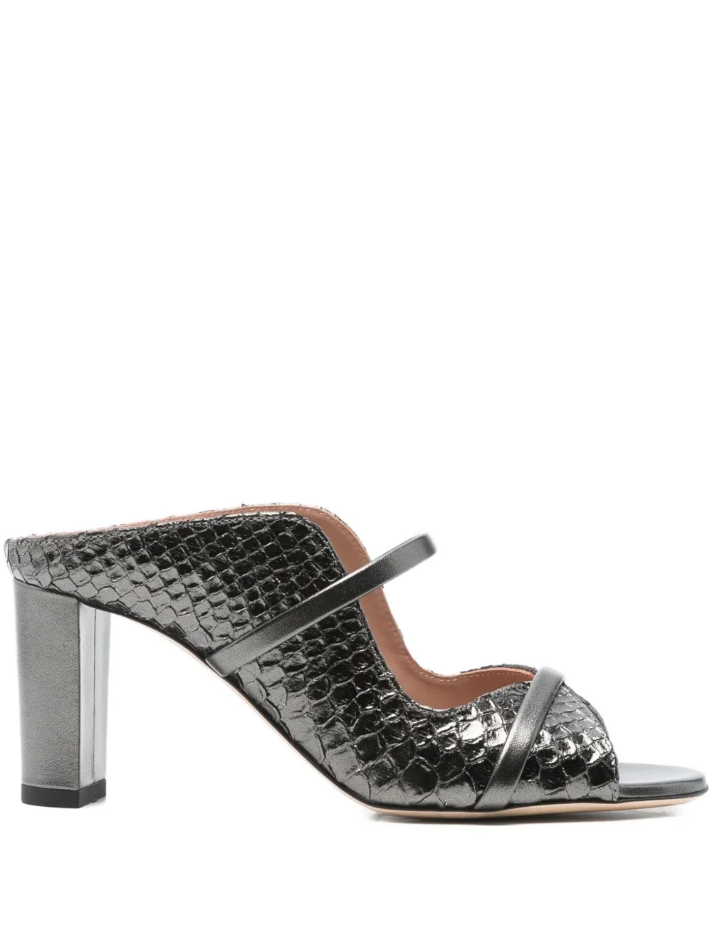 70mm Norah sandals Highlights - Grey - Snakeskin effect - Open toe - Double strap - Block heel - Leather upper Made in Italy Composition Sole: Calf Leather 100% Outer: Calf Leather 100% Lining: Calf Leather 100% SIZE & FIT Measurement HEEL 2.75 in(7 cm)