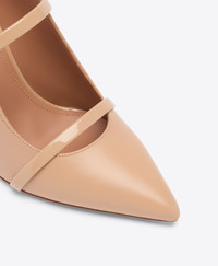 An icon of feminine sophistication, we made our name with the Maureen. Our signature silhouette is reimagined in soft Buff Nappa leather - a refined neutral that will pair effortlessly with almost anything. Shaped with a pointed toe and finished with double patent straps for subtle contrast, this 70mm stiletto offers timeless elegance and effortless wearability from day to night. - Colour: Buff - Material: Nappa/ Patent - Sole and Lining: 100% Leather - Style: Heeled Mules - Handmade in Italy - Fitting: Fits small to size, take half a size larger SIZE & FIT - Fits small to size, take half a size larger - Italian sizing - Model wears size IT37, US7, UK4 - Heel height 70mm/2.7in