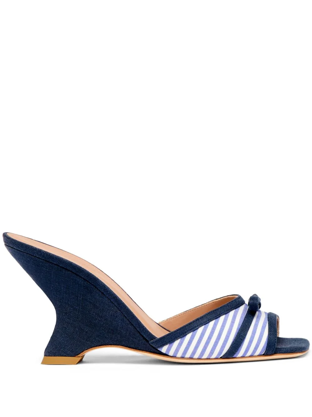 85mm Isla sandals Highlights - Navy blue/white - Leather/linen blend - Slip-on style - 85mm high heel - Horizontal stripe pattern - Bow detailing - Branded footbed - Leather sole Made in Italy Composition Cotton 100% SIZE & FIT Measurement HEEL 3.34 in(8.5 cm)