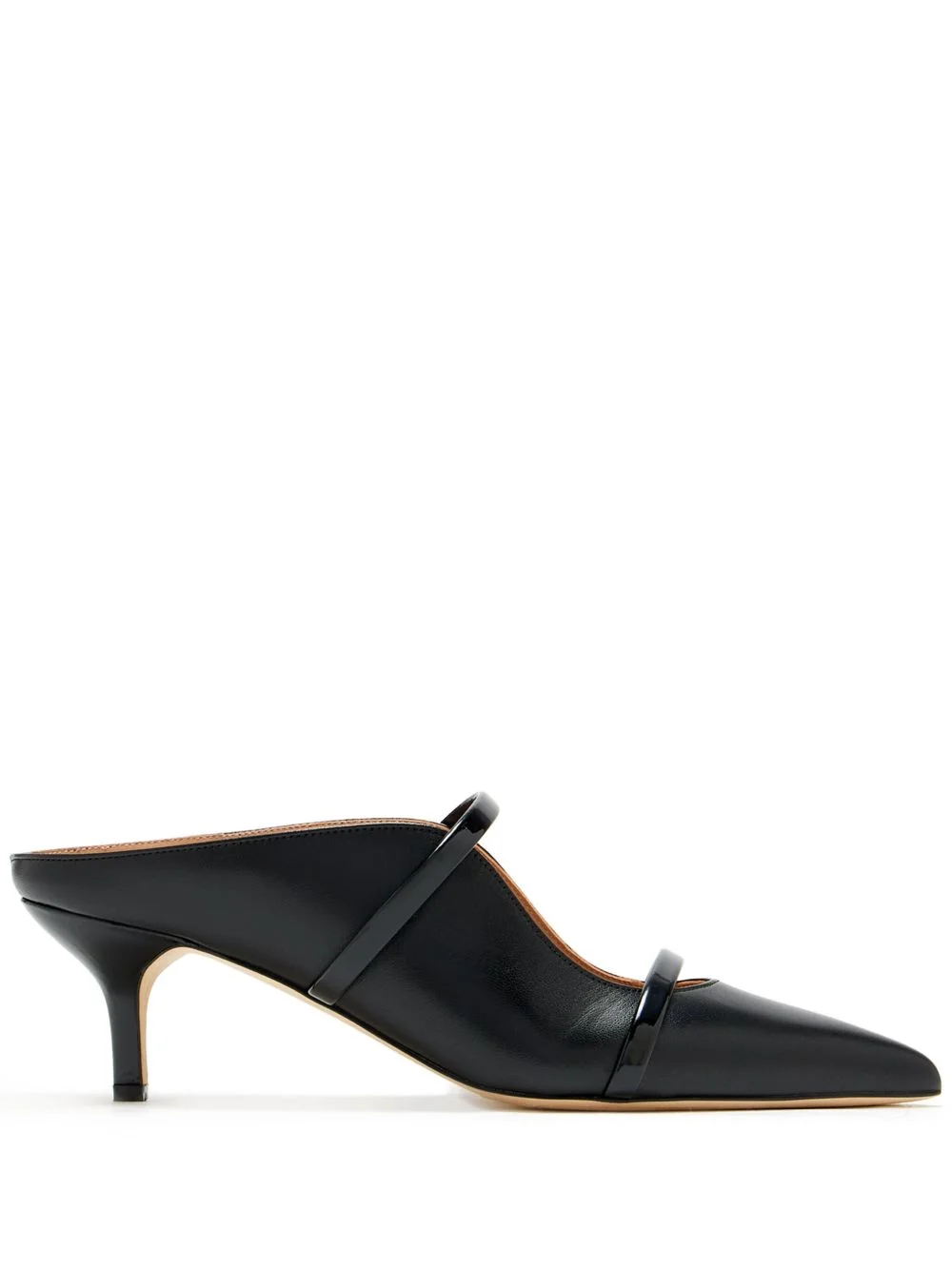 85mm Maureen mules Highlights - Black - Branded leather insole - Leather sole - Thin straps Made in Italy Composition Outer: Calf Leather 100% Sole: Calf Leather 100% Lining: Calf Leather 100% SIZE & FIT Measurement HEEL 3.34 in(8.5 cm)