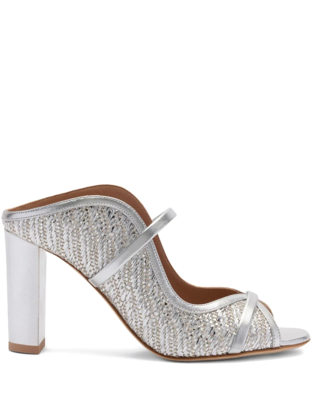 85mm Norah sandals Highlights - Silver-tone - Slip-on style - Branded leather insole - Leather sole - High block heel Made in Italy Composition Outer: Raffia 90%, Metallic Leather 10%