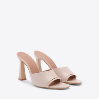 A new silhouette with timeless appeal, reimagined in pale pink Nappa. The Roxanne mule draws inspiration from the glamour of classic noir cinema. Crafted in smooth pale pink Nappa leather, its sculptural shape is defined by a squared toe and wide strap. Set on a 90mm flared block heel, Roxanne offers confident ease from day to night. - Colour: Shell - Material: Nappa Leather - Sole and Lining: 100% Leather - Style: Heeled Sandals - Handmade in Italy - Fitting: True to size SIZE & FIT - Fits true to size - Italian sizing - Model wears size IT37, US7, UK4 - Heel height 90mm/3.5in