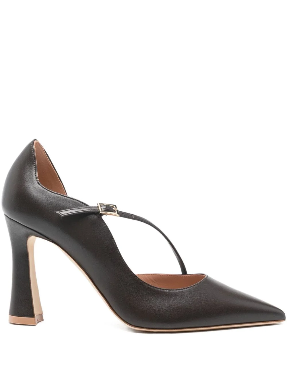 95mm Bettina strap pumps Highlights - Dark brown - Pointed toe - Strap detail - Buckle fastening - High heel Imported Composition Sole: Calf Leather 100%, Rubber 100% Outer: Calf Leather 100% Lining: Calf Leather 100% SIZE & FIT Measurement HEEL 3.74 in(9.5 cm)