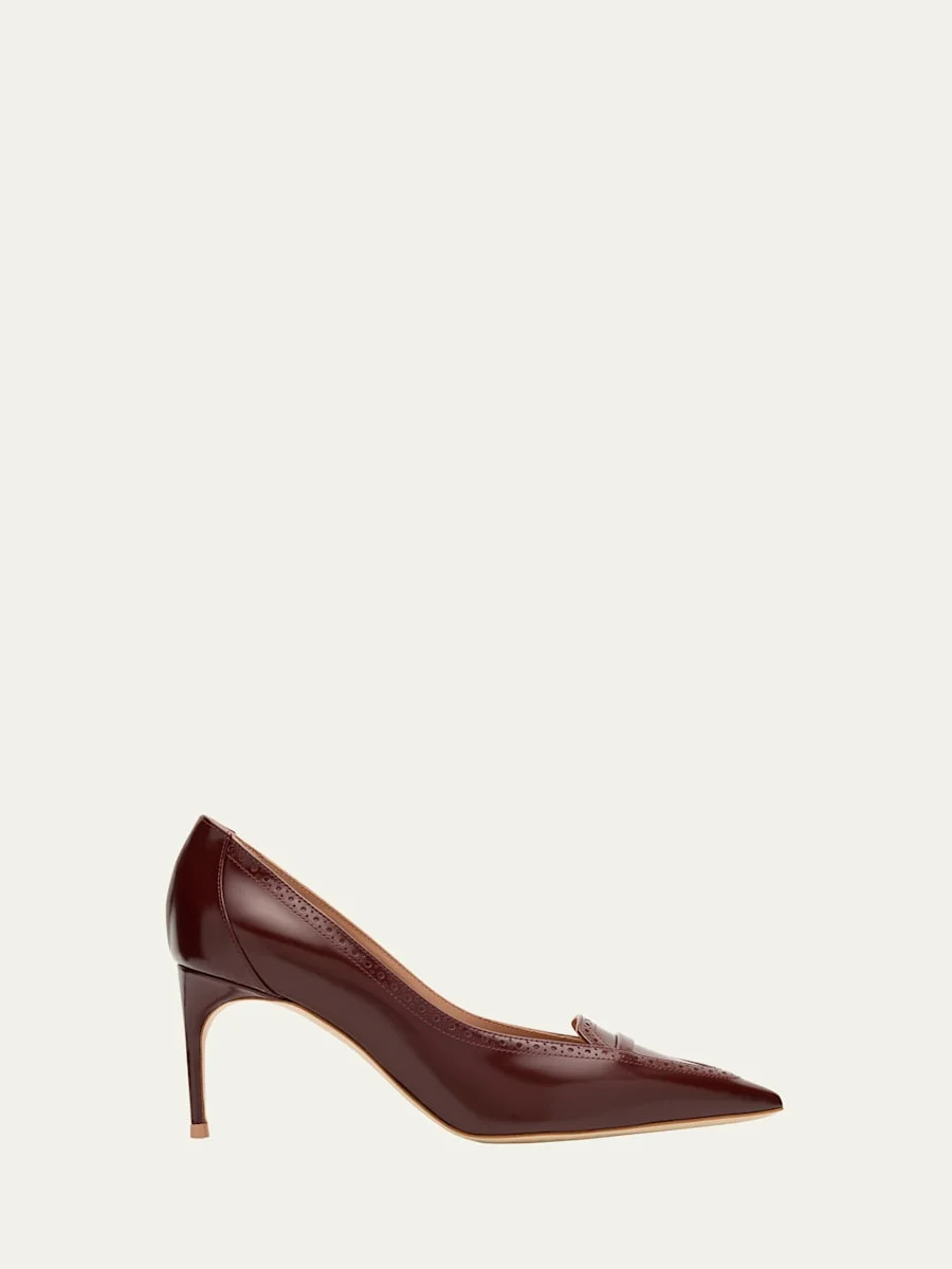 Malone Souliers "Annette" pumps in smooth calf leather with brogue trim detailing 2.75 in / 70 mm stiletto heel Pointed toe Notched vamp Slipon style Leather lining and outsole Made in Italy