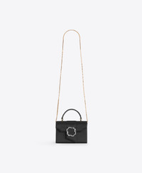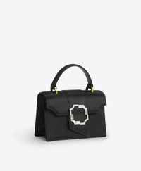 The smallest member of the Audrey family is offered in lustrous black satin. With all the charm of its larger siblings, the Audrey Mini is perfect for evening. Its square shape is constructed from light-reflecting black satin, making it a truly versatile addition to your wardrobe. Our crest buckle makes for a dazzling adornment. - Colour: Black - Material: Satin - Lining: Cotton - Style: Handbag - Handmade in Italy SIZE & FIT - Width: 17cm - Depth: 8cm - Height: 12cm - Top handle drop: 8.5cm - Additional chain drop: 52cm