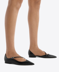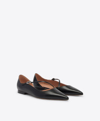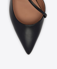 The Bettina flat reimagines the classic D'Orsay pump with a modern sensibility. Malone Souliers' signature curves lend fresh perspective to this new-season pointed-toe silhouette, crafted in smooth black Nappa leather. Defined by its sculptural cutaway and slender diagonal strap, Bettina is grounded by a flat monoblock heel offering effortless comfort and uncompromising elegance. - Colour: Black - Material: Nappa Leather - Sole and Lining: 100% Leather - Style: Flat Pumps - Handmade in Italy - Fitting: True to size SIZE & FIT - True to size - Italian sizing - Model wears size IT37, US7, UK4 - Heel height 10mm/0.4in