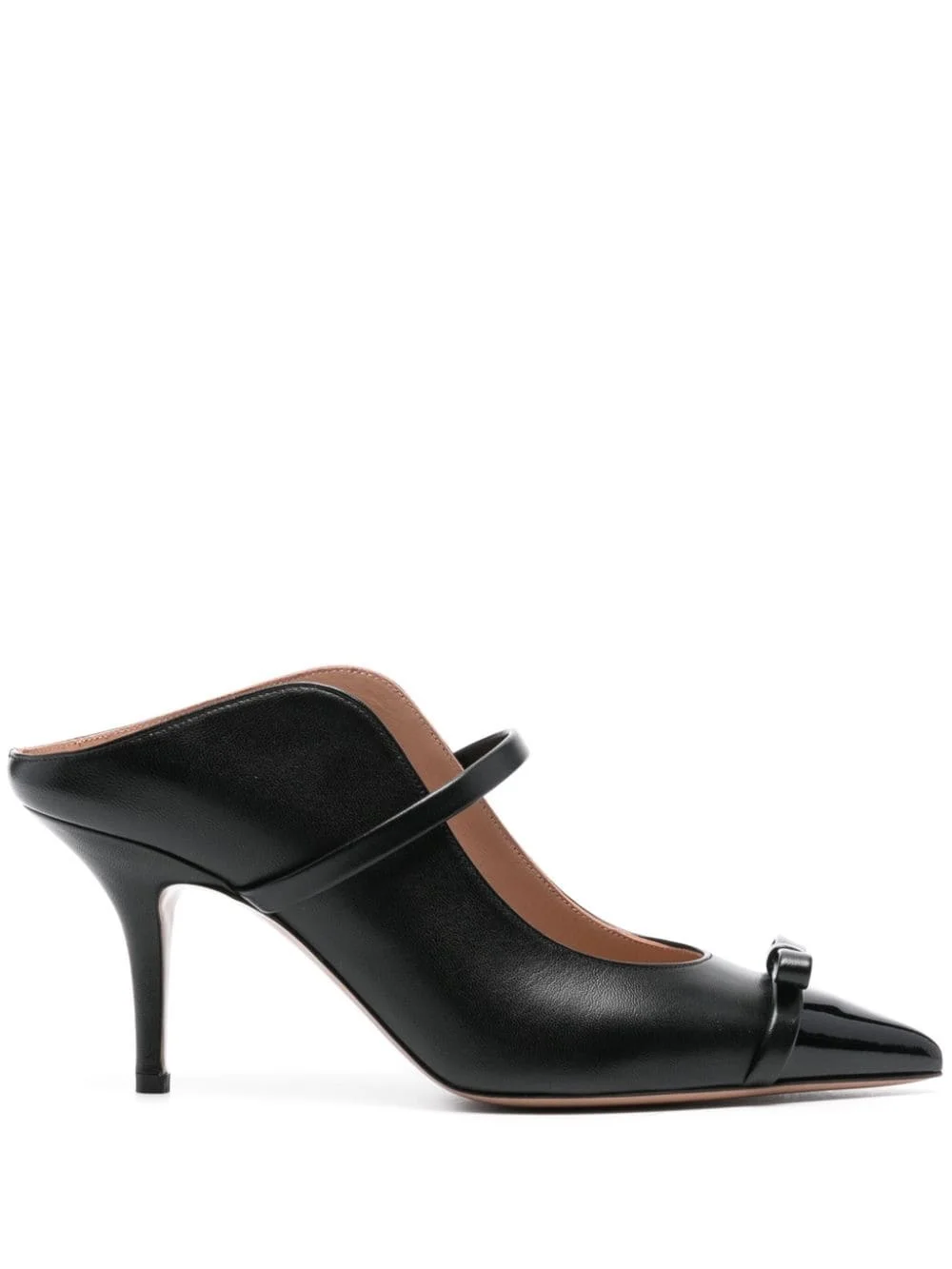 Blanca 70mm leather mules Highlights - Black - Leather - Smooth grain - Pointed toe with patent finish - Leather bow detailing - Leather strap - Branded leather insole - 70mm high heel - Leather sole Made in Italy Composition Outer: Nappa Leather 90%, Patent Leather 10% Lining: Calf Leather 100% Sole: Calf Leather 100% SIZE & FIT Measurement HEEL 3.14 in(8 cm)