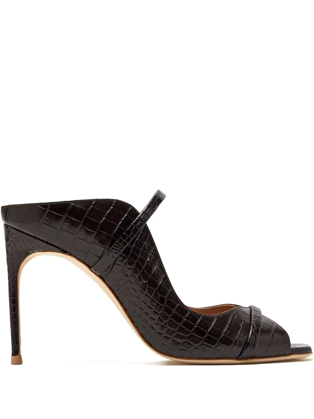 crocodile-embossed heeled mules Highlights - Black - Stiletto heel - Cross-strap design - Padded insole - Open square toe Made in Italy Composition Outer: Calf Leather 100% Lining: Calf Leather 100% Sole: Calf Leather 100%