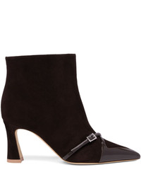 Denise 70mm ankle boots Highlights - Chocolate brown - Decorative buckle detail - Pointed toe - Mid block heel Made in Italy Composition Outer: Suede 90%, Patent Leather 10% Lining: Leather 100% Sole: Leather 100%