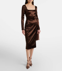 Malone Souliers’ signature double straps offer both support and chic contrast. The Diaz pumps are made from lustrous satin with leather trims and sit atop 100mm stiletto heels. Product Details - Upper: satin - Lining: leather - Sole: leather insole and sole - Color: brown - Toe shape: pointed toe - Handmade in Italy - Includes: dust bag, shoe box - Designer color name: Taupe/Taupe - Trim: leather - Hardware color: gold - Closure: buckle-fastening ankle strap - Item number: P01136044 Size & Fit - True to size - European sizes - 10cm-4" heel