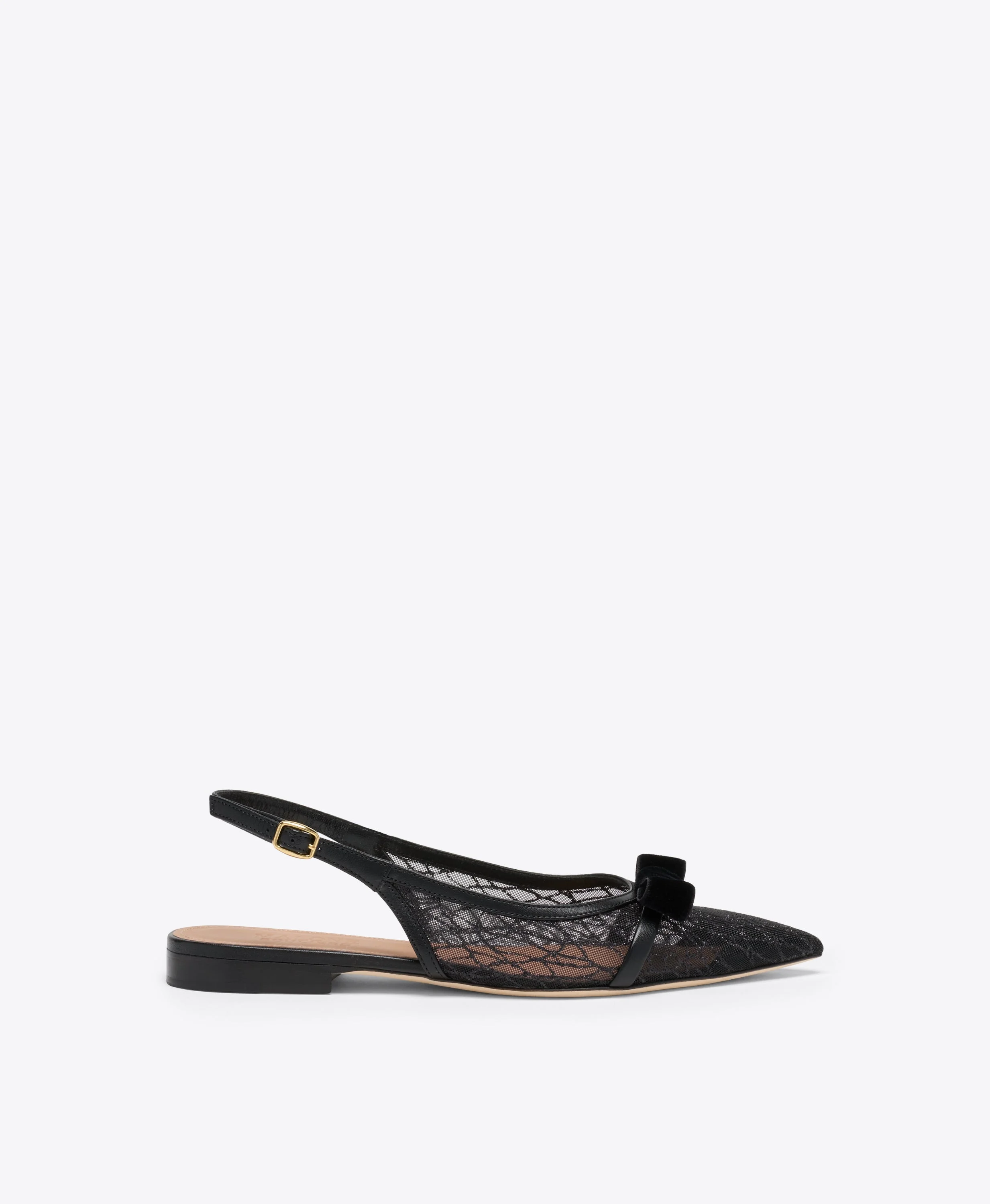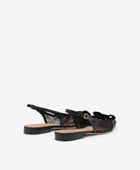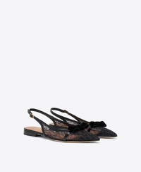 Evening elegance, redefined in a flat silhouette. This Jama slingback is part of our Holiday capsule, crafted from black glitter mesh with Nappa leather trims and a velvet bow detail. Set on a subtle 10mm heel, it offers a striking finish for after-dark dressing. - Colour: Black - Material: Glitter Mesh/Nappa/Velvet - Sole and Lining: 100% Leather - Style: Flat Slingbacks - Handmade in Italy - Fitting: True to size SIZE & FIT - True to size - Italian sizing - Model wears size IT37, US7, UK4 - Heel height 10mm/0.4in