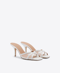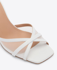 A study in softness and structure, Perla arrives in sheer white mesh. This new-season reimagining features a squared toe, slender strap, and a sculptural 70mm stiletto heel-capturing quiet confidence in every step. Elegant, effortless, and endlessly versatile. - Colour: White - Material: Mesh/Nappa - Sole and Lining: 100% Leather - Style: Heeled Sandals - Handmade in Italy - Fitting: True to size SIZE & FIT - True to size - Italian sizing - Model wears size IT37, US7, UK4 - Heel height 70mm/2.7in