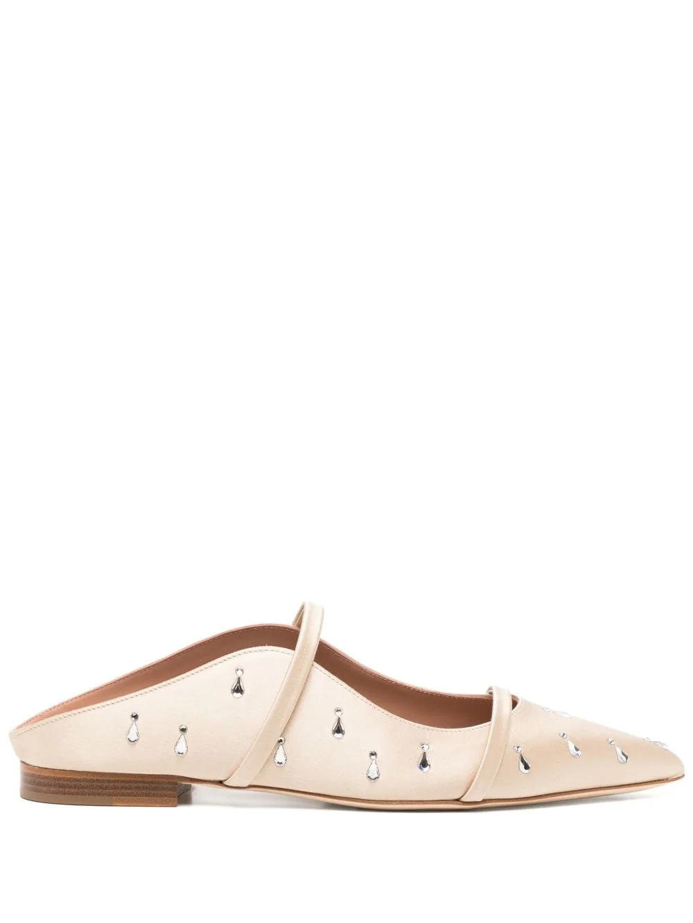Maureen mules Highlights - Light beige - Pointed toe - Slip-on style - Crystal embellishment Made in Italy Composition Lining: Leather 100% Outer: Satin 100% Sole: Calf Leather 100%