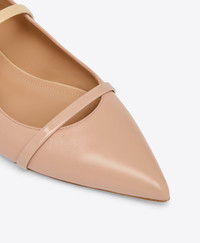 An icon of feminine sophistication, we made our name with the Maureen. One of our most-loved silhouettes now comes in a flat shoe crafted from beige Nappa leather. Complete with waved lines and a pointed toe, its signature straps stand out in contrasting glossy patent. The backless design offers versatile day-to-day style and understated elegance for evening wear. - Colour: Buff - Material: Nappa/Patent - Sole and Lining: 100% Leather - Style: Flat Mules - Handmade in Italy - Fitting: Fits small to size, take half a size larger SIZE & FIT - Fits small to size, take half a size larger - Italian sizing - Model wears size IT37, US7, UK4 - Heel height 10mm/0.4in